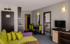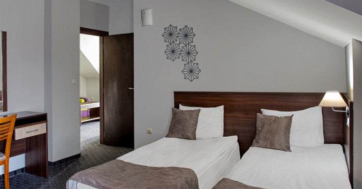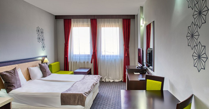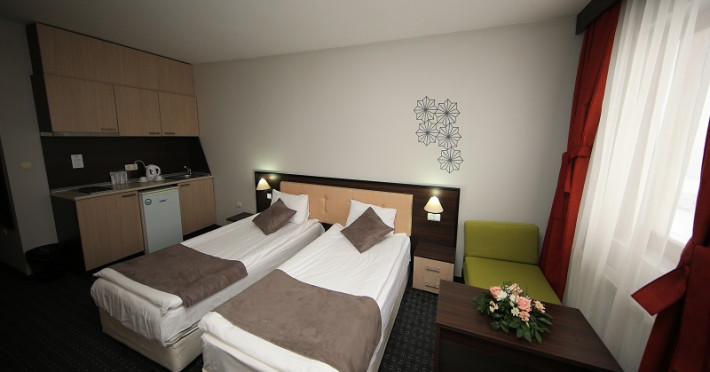 Camere spatioase si luminoase care dispun de mini-bar, serviciu de ceai si cafea, TV cu ecran plat, serviciu de ceai si cafea, wi-fi, uscator de par, schimbarea lenjeriei de pat de 2 ori pe saptamana. Capacitate: 2+1 (35mp).