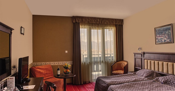 Camere spatioase si generoase, dotate cu mini-bar, televiziune prin cablu, wi-fi gratuit, balcon, uscator de par, telefon, curatenie zilnica, schimbarea lenjeriei de pat de 2 ori pe saptamana. Capacitate: 2+1/3 (30 mp).