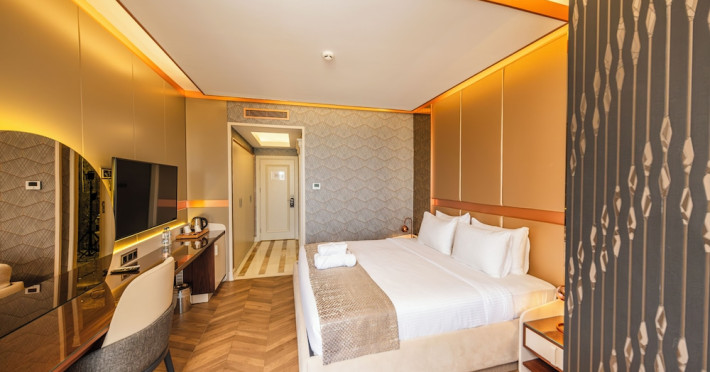 Overview: The friendly staff at the reception desk are happy to answer any questions. Amenities include a baggage storage service and a safe. Wireless internet access is provided in public areas. The hotel has wheelchair-accessible facilities and a lift. A garden provides extra space for rest and relaxation in the open air. Additional facilities include a TV room. Guests arriving by car can park their vehicles in the car park for no extra charge. Further services and facilities include a 24-hour security service, medical assistance, a transfer service, 24-hour room service, a laundry service, a coin-operated laundry and a hotel shuttle bus. Travellers with bicycles can make use of the on-site bicycle storage area. The business centre is on hand for guests business requirements and provides a fax machine. Location: Located in Istanbul, this hotel is ideal for those in need of an adults-only holiday. LeisureFacilities: Guests can enjoy a selection of sport and entertainment options. The outdoor pool complex includes a childrens swimming area and is ideal for working out or just relaxing. A terrace with sun loungers and parasols is available. The pool bar serves a selection of refreshing drinks. A wellness area with a sauna is available at the hotel. Copyright GIATA 2004 - 2024. Multilingual, powered by www.giata.com for client no. 124567 Rooms: Air conditioning, central heating and a fan ensure that rooms maintain comfortable temperatures. Most units have a sea view. The rooms have a king-size bed and a sofa bed. Extra beds can be requested. A minibar and a desk are also available. Guests will also find a tea/coffee station included among the standard features. A trouser press is provided for guests convenience. A telephone, a TV and WiFi (no extra charge) are provided as well. Slippers are included. A hairdryer and bathrobes are provided in the bathrooms, which include a shower. As a special feature, bathrooms are also stocked with cosmetic products and a selection of towels. The hotel has family rooms, non-smoking rooms and smoking rooms. RestaurantsAndBars: The dining area includes a restaurant and a café. A continental breakfast guarantees a great start to the day. Staff are also happy to provide childrens meals. The hotel also offers snacks.Datorita dinamicitatii domeniului disponibilitatea ofertelor se modifica de la un moment la altul. De aceea ofertele sunt valabile in limita locurilor disponibile. Agentia nu este responsabila pentru eventualele neconcordante care pot aparea intre informatiile privind tarifele si alte detalii din site si informatiile primite in agentie. In aceste cazuri vor avea prioritate, intotdeauna, informatiile primite in agentie.