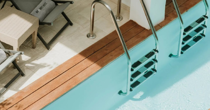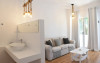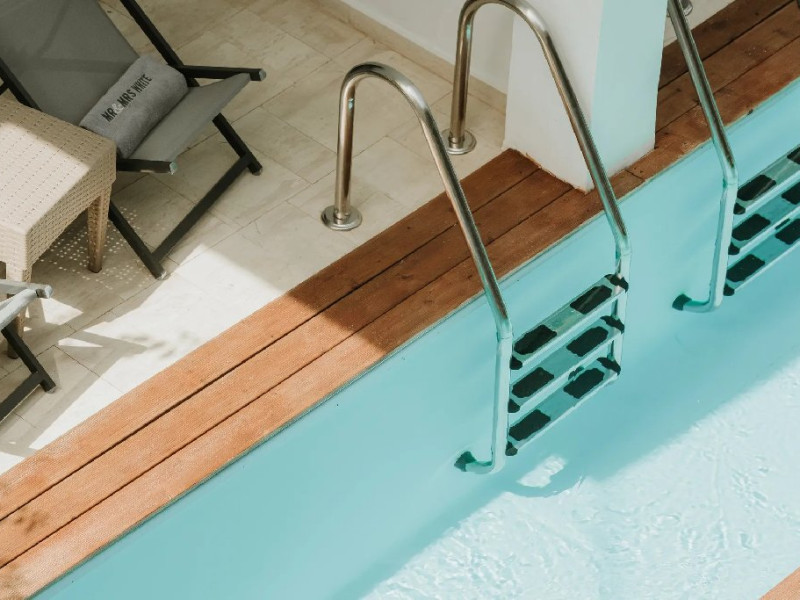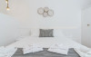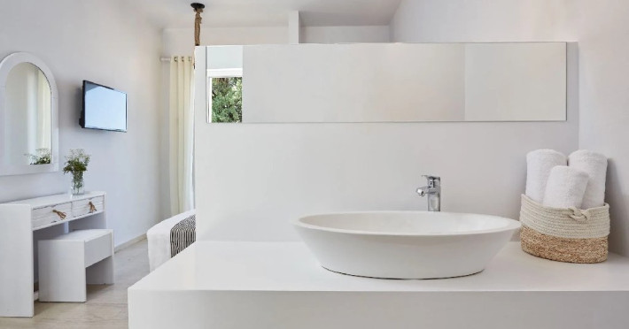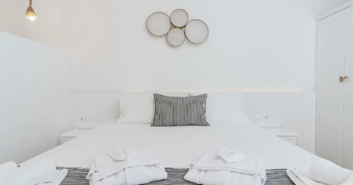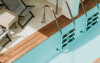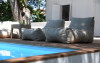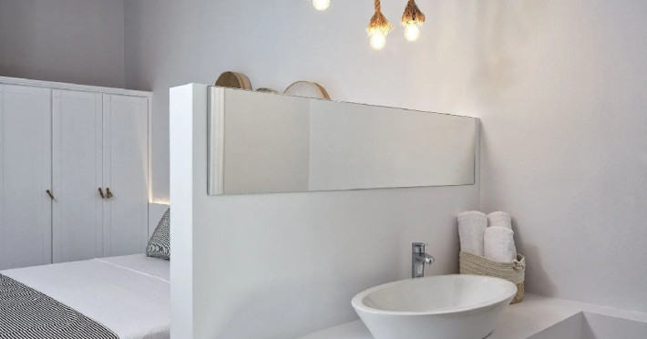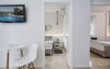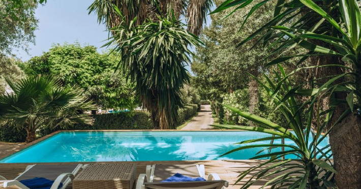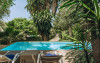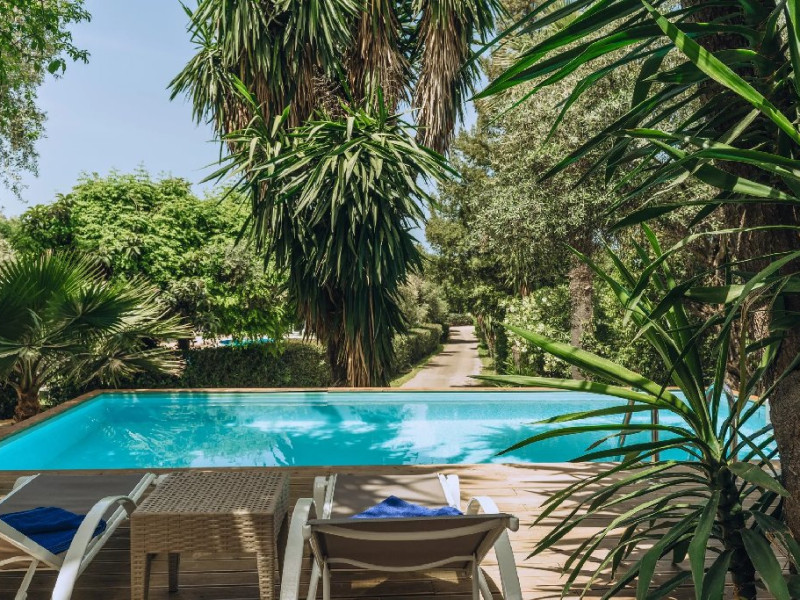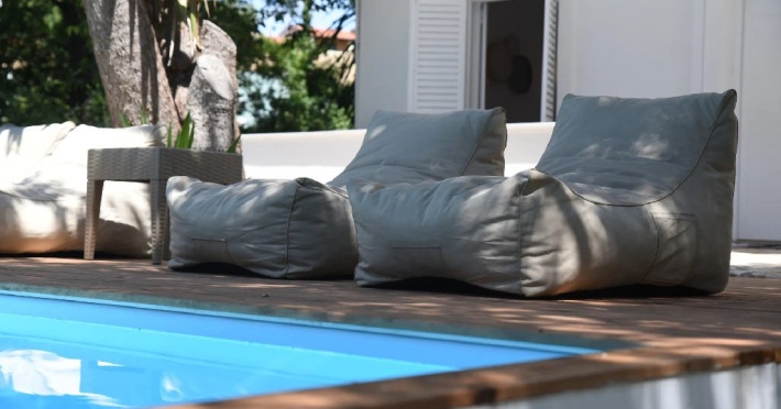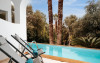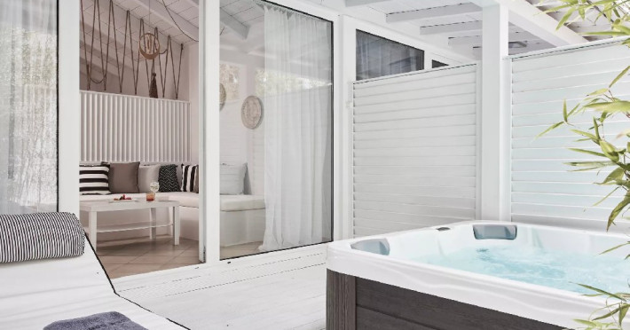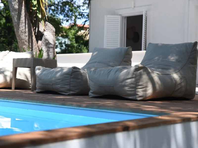 Suite cu 2 dormitoare si piscina privata, capacitate de cazare 4 persoane, 1 dormitor cu pat dublu, al doilea dormitor cu 2 paturi single, halat si papuci, uscator de par, baie proprie, dus cu hidromasaj, aer conditionat, tv, wifi , balcon cu iesire la piscina.