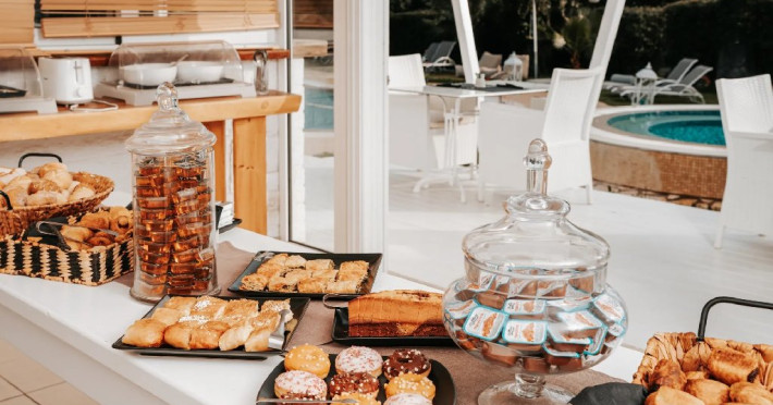 Facilitati hotel: receptie, concierge, seif, restaurant, piscina, bar la piscina, jacuzzi exterior, zona de gustari, parcare, sezlonguri si umbrele la piscina gratuit.
