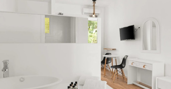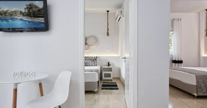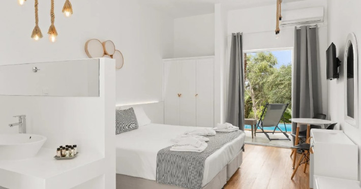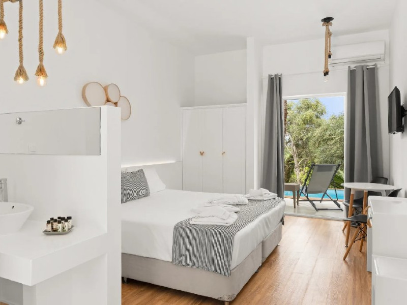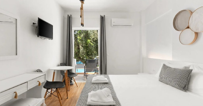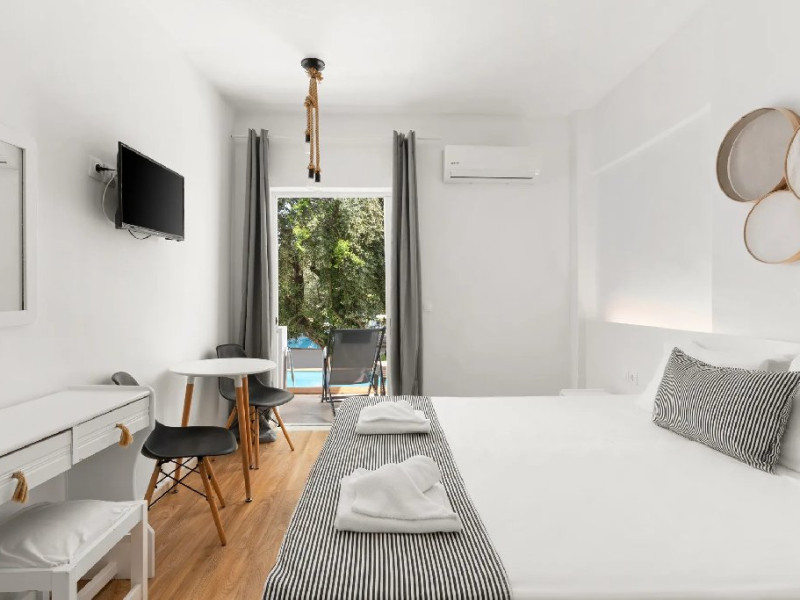 Localizare: Hotelul Mr and Mrs White a Adults Only este situat in satul pitoresc Acharavi din nordul insulei Corfu, la aproximativ 37 km de orasul Corfu si 35 km distanta de aeroportul international. Plaja Acharavi se afla la 600 metri distanta.Facilitati camere: hotelul dispune de 38 de camere cu balcon mobilat cu vedere catre gradina,