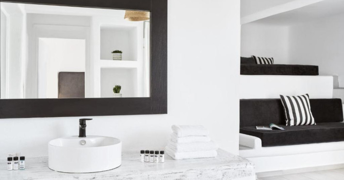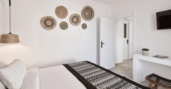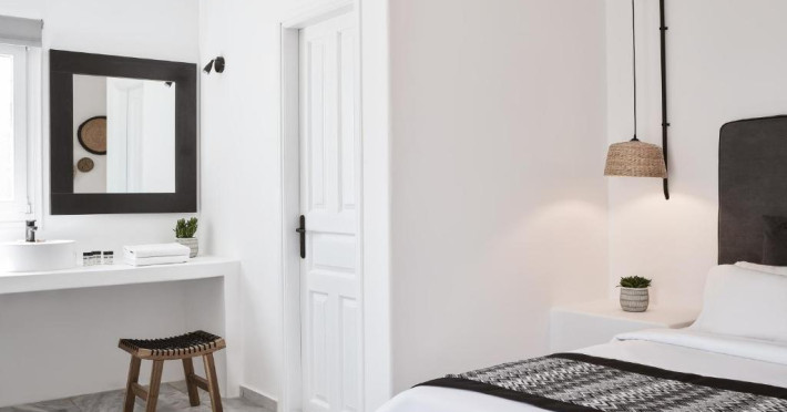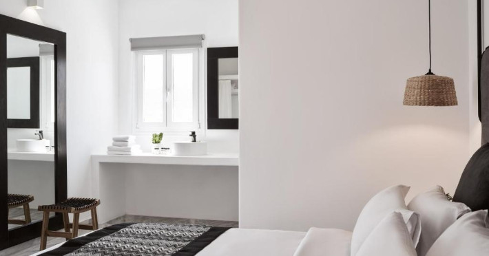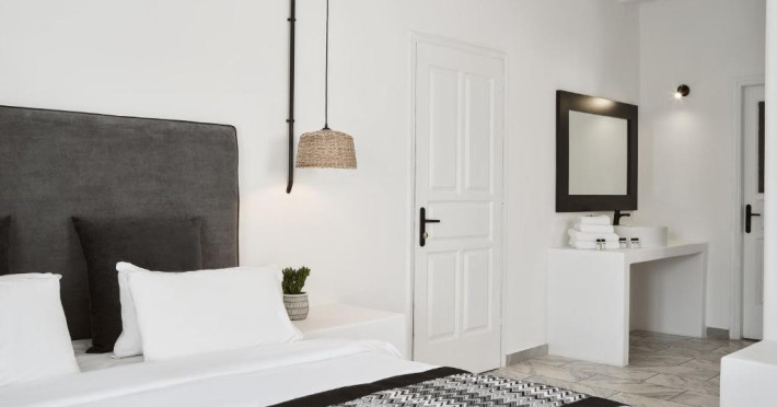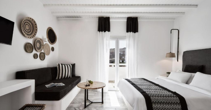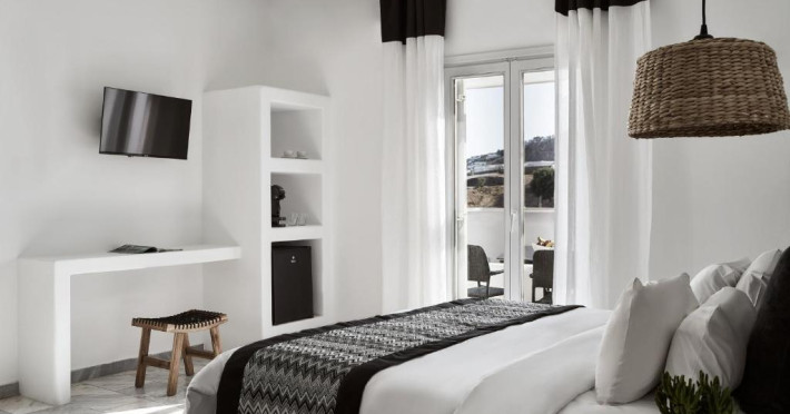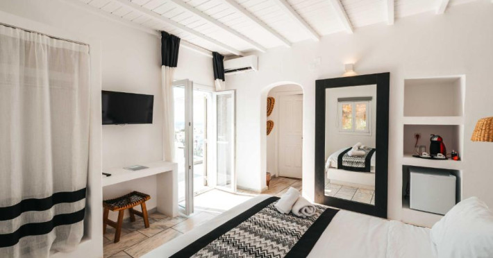 Camerele confortabile de la Mr And Mrs White Mykonos au pardoseală de gresie/ marmură, aer condiționat, Tv cu canale prin satelit și seif. Fiecare cameră dispune de minibar. Oaspeții pot solicita serviciul de room service pentru a servi masa sau diverse băuturi. Unele camere au balcon cu vedere la mare. Oaspeții au acces gratuit la serviciul Wi-fi în camere. În camere există baie cu cadă sau duș ce are în dotare foehn și articole de toaletă gratuite. Curățenia in cameră se face zilnic. Proprietatea oferă camere pentru familie cu o suprafață mai mare și un număr mai mare de paturi față de cele standard.