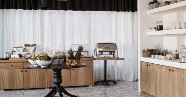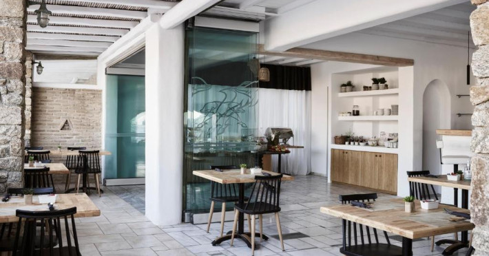 Mr And Mrs White Mykonos servește zilnic un mic dejun tip bufet în zona de luat masa. La proprietate există un bar care oferă cafea și diverse băuturi. Acestea pot fi servite atât în interior, cît si în aer liber, pe terasă, în funcție de vreme.