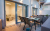 Mr amp; Mrs K. Lofts is located in the heart of Potos.All restaurants, cafes amp; shops are just a 5 minute away on footBus stop amp; taxi is nearby the accommodation to take you away to all the great beaches on the island.It has six accommodation units, four of them in the front of the building, on the side of the main street and the main road which can accommodate max 3 persons and two on the backside of the building where the yard is which can accommodate max 4 persons.The windows and doors are made of special glass, which is highly soundproof.Accommodation units are loft (maisonette) type and consist of two levels (lower level 19-21m2 and upper 9m2). Each of them has a double bed on the upper level and a single bed or corner sofa in the lower, so they can host three or four people. All Lofts come with laminate floors, air conditioning, a flat-screen TV with SAT TV, WiFi internet, fully equipped kitchen (small fridge, two hot plates, coffee machine, kettle, toaster) for preparing basic, light meals (frying is not allowed) and a private bathroom with shower and a hairdryer.Housekeeping is provided every day, towel change every second day and with linen change every third day and all our amenities are parabens free.The accommodation has private parking (30m from the accommodation) and on the city beach in Potos (270m from the accommodation) we cooperate with a beach bar where the sun beds for our guests are free of charge and they enjoy also a discount of 10 of the pricelist.Our facility raises the level of luxury amp; comfort in Potos even higher and is high recommended for families up to 4 persons.Datorita dinamicitatii domeniului disponibilitatea ofertelor se modifica de la un moment la altul. De aceea ofertele sunt valabile in limita locurilor disponibile. Agentia nu este responsabila pentru eventualele neconcordante care pot aparea intre informatiile privind tarifele si alte detalii din site si informatiile primite in agentie. In aceste cazuri vor avea prioritate, intotdeauna, informatiile primite in agentie.