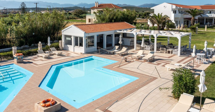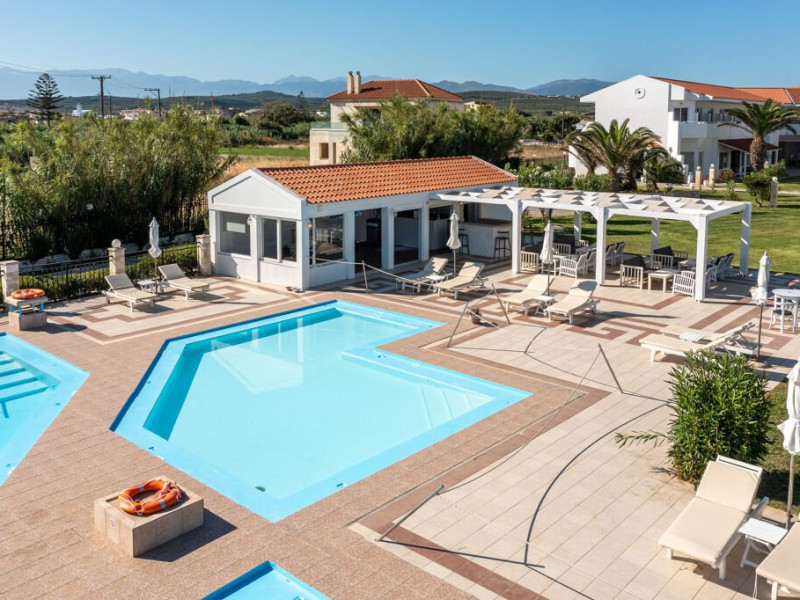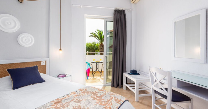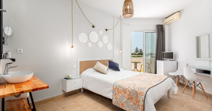 Descriere: Hotelul Mrs Chryssana Beach, partial renovat in 2021, este situat intr-o zona linistita din Kolymbari, chiar langa o plaja lunga, in cadrul unei zone protejate de Natura 2000. Hotelul imbina un design mediteranean tipic, in tonuri de alb, cu o estetica minimalista, oferind camere duble recent renovate, care creeaza un cadru elegant si relaxant.Localizare: in zona Kolymbari, la doar 25 de metri de o plaja cu pietris (peste drum) si la 38 de kilometri de Aeroportul International din Chania.