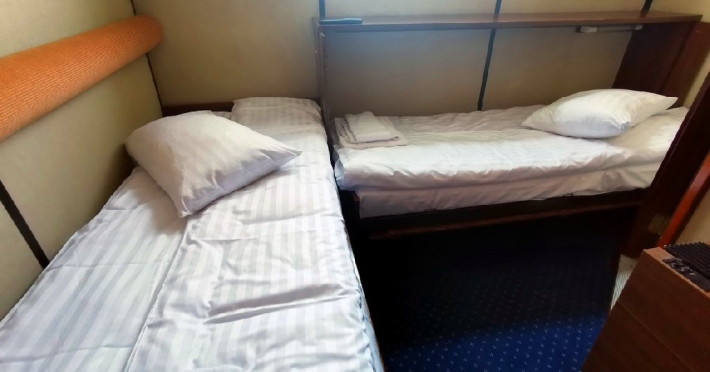 Nava dispune de 25 cabine duble cu pat twin sau matrimonial si 7 apartamente pentru 4 persoane. Cabinele de 2 locuri au suprafata de 10 mp!; apartamentele au 20 mp!