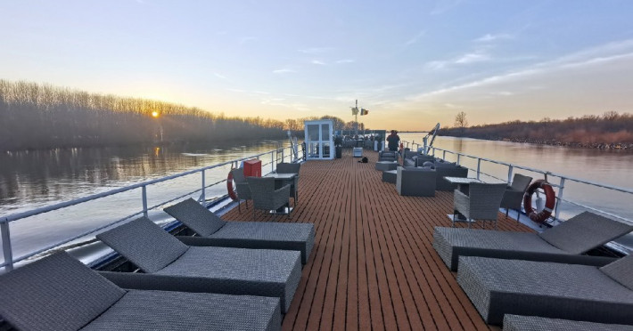 De asemenea, pe puntea principala exista un bar-salon. Tot in salon exista un sistem de karaoke, tv cu diagonala mare, ring de dans. Aici se vor organiza degustarile de vinuri si programele artistice ale comunitatilor din Delta Dunarii.