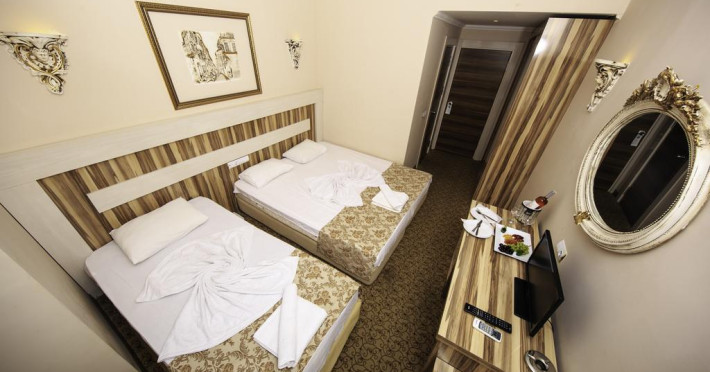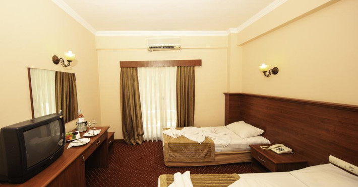 Camerele hotelului au balcon cu vedere la munte, doar cateva avand vedere la mare. Toate camerele sunt prevazute cu tv si dulap.