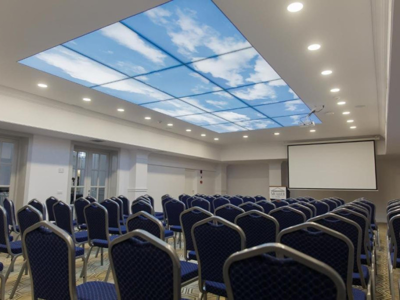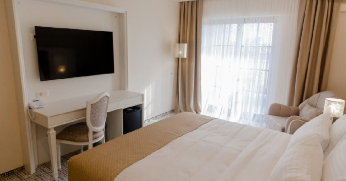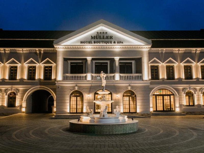 Muller Hotel este situat intr-o zona rezidential a orasului Galati. Construit pe o suprafata de 3000 mp care include o parcare privata gratuita, hotelul isi propune sa ofere o experienta de cazare elevata la cel mai inalt rang de confort si eleganta. Cu un design inspirat din elemente clasice dar cu dotari ultra-moderne, camerele sunt spatioase si primitoare, iar apartamentele invita la o atmosfera aristocratica dar foarte actuala. Restaurantul elegant, cafeneaua, spa-ul, centrul de seminarii si conferinte completeaz oferta si ridica si calitatea serviciilor la nivel de excelenta. Hotelul isi doreste sa fie mai mult decat o unitate de cazare exceptional. Cldirea poarta o semntur arhitecturala unica, cu respect pentru istoria locului si se doreste a fi un edificiu de referint in zona.Datorita dinamicitatii domeniului disponibilitatea ofertelor se modifica de la un moment la altul. De aceea ofertele sunt valabile in limita locurilor disponibile. Agentia nu este responsabila pentru eventualele neconcordante care pot aparea intre informatiile privind tarifele si alte detalii din site si informatiile primite in agentie. In aceste cazuri vor avea prioritate, intotdeauna, informatiile primite in agentie.