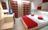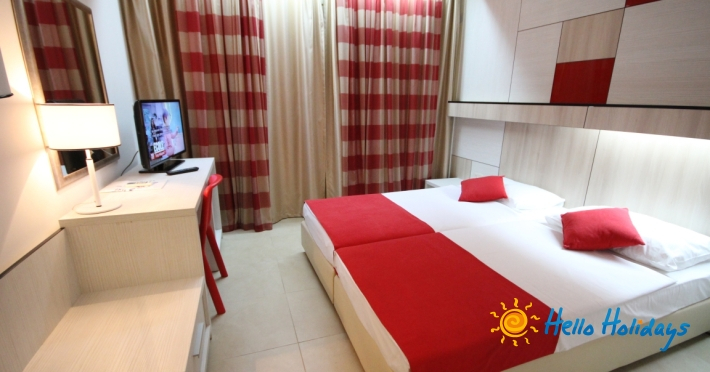 Facilitati camere: Camerele din hotel: complet renovate, confortabile, cu baie/WC, feon, telefon, TV, frigider, seif, AC/incalzire (in functie de sezon). Camerele clasificate la 4* sunt mai patioase. Apartamentele din casele de vacanta sunt complet renovate, cu chicineta, loc pentru servit masa, feon, telefon, TV, dus/WC, AC/incalzire (in functie de sezon), seif, balcon sau terasa.Studiourile pt 1-3 persoane (cca. 35 mp): living cu zona de dormit cu pat dublu si o canapea extensibila. Studiourile clasificate la 4* nu au chicineta, dar au zona de zi. Apartamentele pt 1-4 persoane (cca 37 mp): living cu zona de dormit cu 2 paturi sau canapea si camera dubla. Apartamentele clasificate la 4* nu au chicineta, dar au zona de zi. Masa: Demipensiune: mic dejun si cina bufet. All inclusive; Mic dejun, pranz, cina, Bauturi locale intre orele 09:00 – 23:00, prajituri 16:00-18:00
