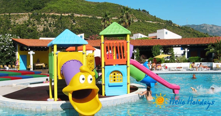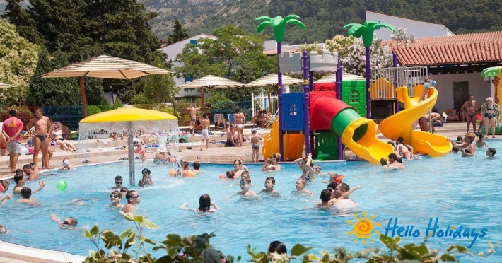 Descriere Hotel: Hotelul Slovenska Plaza 3* este situat in inima statiunii Budva, la doar 500m de centrul istoric si 30m de plaja cu pietricele, pe promenada principala, cu multe restaurante, cafenele, baruri, cluburi. Face parte dintr-un complex turistic cu foarta multe zone verzi si palmieri. Foarte aproape de renumita plaja publica „Slovenska beach”.Complexul este format din hotel si cladiri cu studiouri si apartamente.