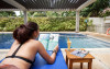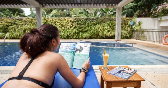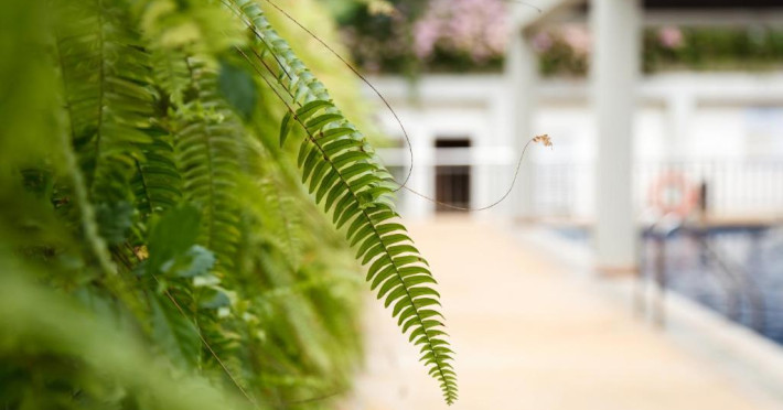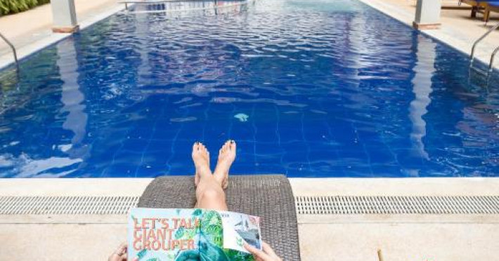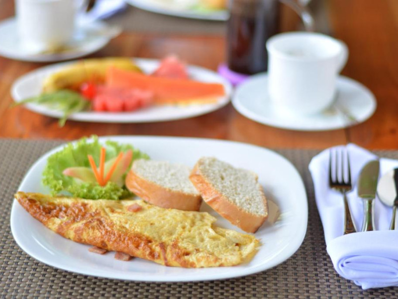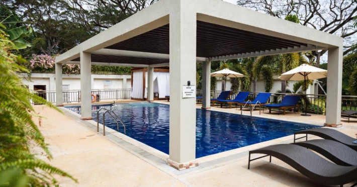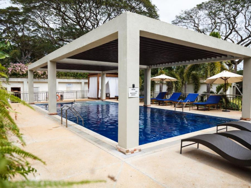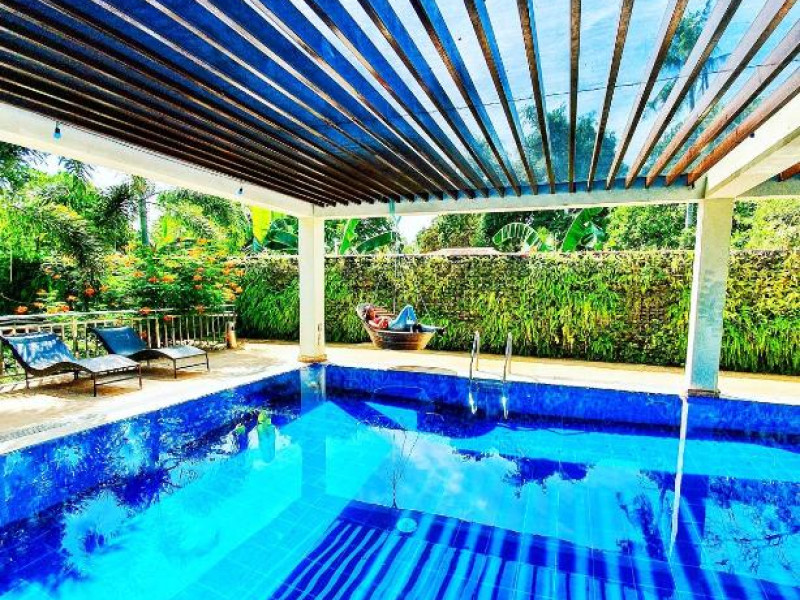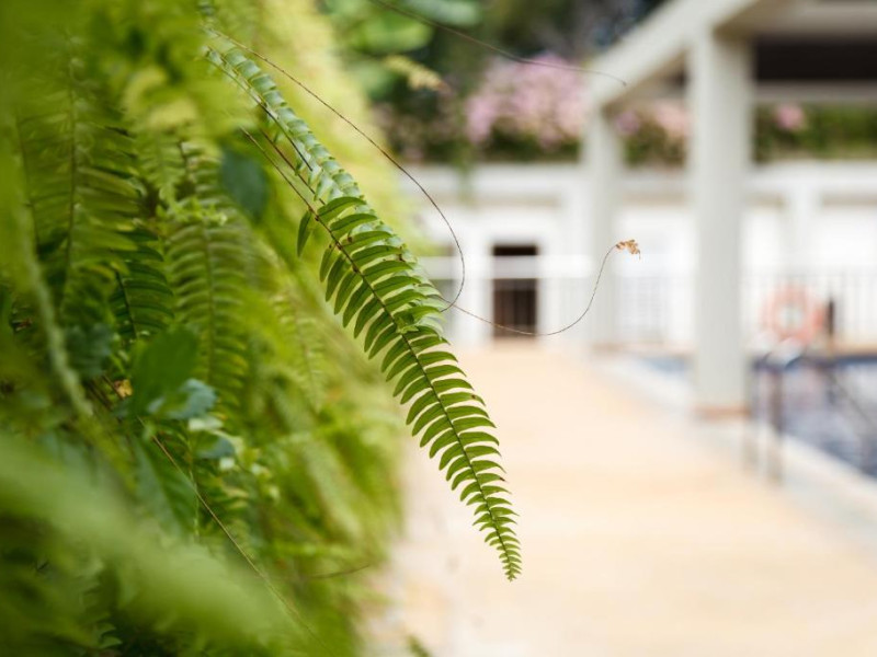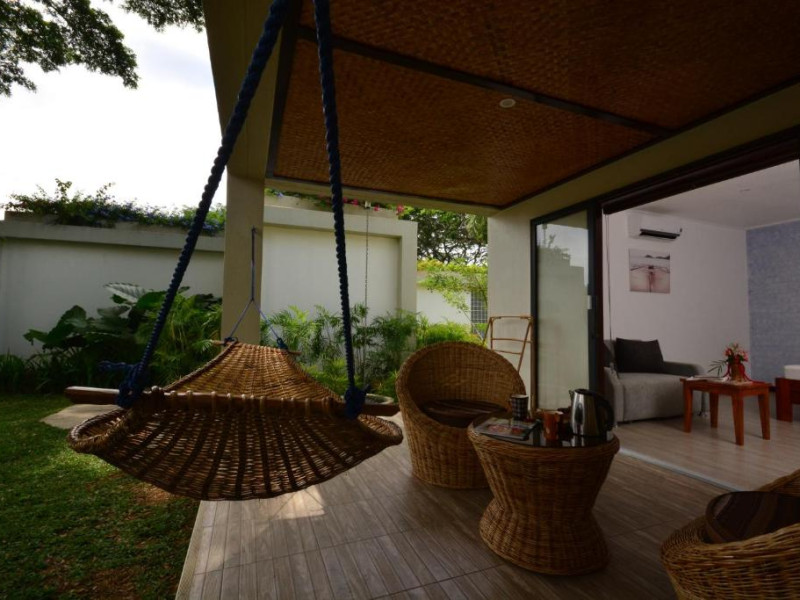 Camerele sunt decorate in stil tropical, cu mobilier din lemn natural și balcoane private care oferă priveliști spre grădina luxuriantă. Oaspeții se pot bucura de piscina in aer liber, perfectă pentru răcorire in zilele călduroase, și de restaurantul hotelului care servește specialități locale și internaționale.