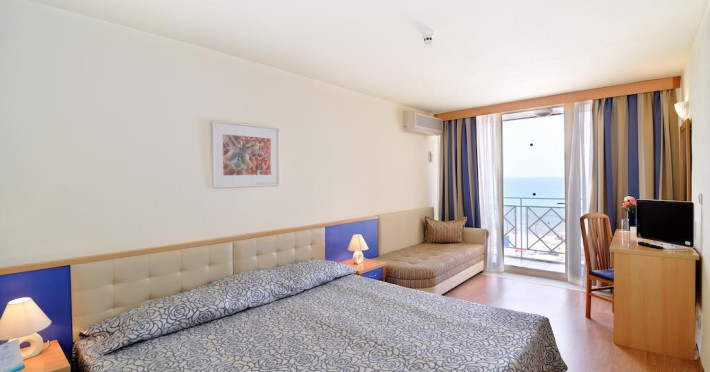 Toate camerele sunt dotate cu aer condiționat, telefon, televizoare LCD cu televiziune prin cablu, minibar (contra cost), Wi-Fi, baie cu uscător de păr, săpun, șampon și oglindă cosmetică, dar si un balcon cu scaune și masă. Există un număr limitat de camere cu uși interconectate sau paturi supraetajate pentru familiile cu copii. Camerele au vedere la parc sau la mare.