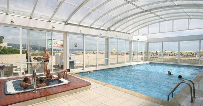 Piscina exterioara, piscina interioara, jacuzzi, restaurant, lobby bar, birou de schimb valutar, lift, seif la receptie (contra cost), conexiune la internet (internet cafe - contra cost, wireless in lobby si lobby bar- contra cost), birou-rent-a-car, masaj (contra cost), mini-market, coafor (la 150m), fitness (la 150m), 2 sezlonguri si o umbrela / camera la piscina si la plaja.