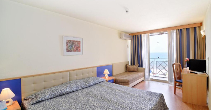Camerele sunt dotate cu balcon, aer conditionat, vedere la mare sau la parc, baie cu dus, uscator de par, televizor, telefon, minibar.