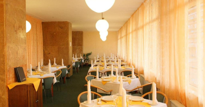 Hotelul are 9 etaje plus parter, 4 lifturi, 70 camere single si 290 camere duble. Restaurantul dispune de 520 de locuri, meniu dietetic la cerere, meniuri la alegere sau a la carte, servicii de catering, bar de zi si terasa de vara.