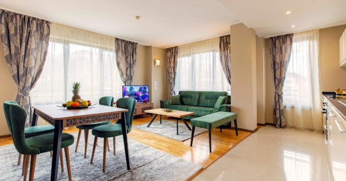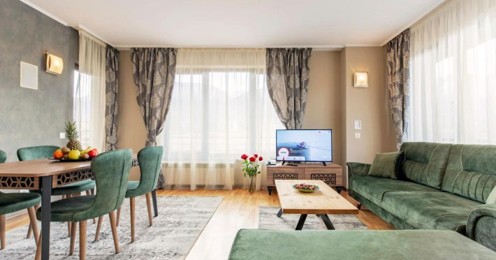 Toate apartamentele au podea din lemn de stejar si cu mochetă in dormitor, precum si balcon cu vedere la munte. Acestea includ TV prin satelit, canapea si iPod docking station cu sistem home entertainment. In plus, unele apartamente au o bucătărie mare.