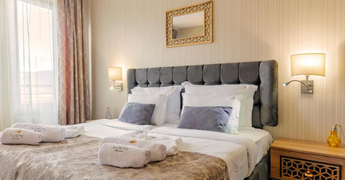 Complexul este format din 4 clădiri tematice - clădirea principală Azalia, Orchid, Kamelia si Jasmin. Clădirea principală găzduieste un centru luxos de spa si wellness, o piscină interioară incălzită accesibilă gratuit, saună, baie de aburi, cadă cu hidromasaj si sală de fitness. De asemenea, hotelul are un hol confortabil, un colt pentru copii, un restaurant cu semineu, magazine, un club de noapte si o sală de jocuri.