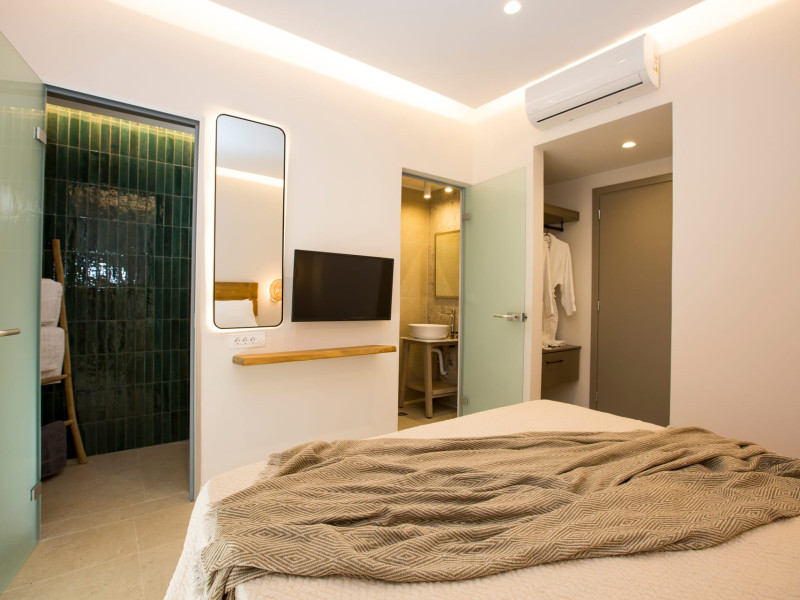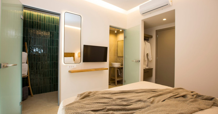 There are 6 villas with each private pool, one of them has two bedrooms and all the other have three.There are 6 villas with each private pool, one of them has two bedrooms and all the other have three.