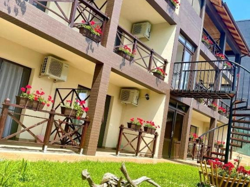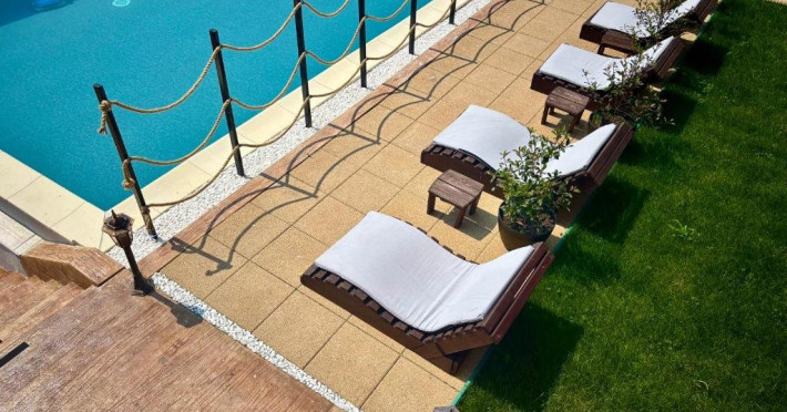 Spatiile comune includ o bucatarie complet utilata, gratar si zona pentru ceaun, terasa exterioara acoperita cu locuri de relaxare, sezlonguri si piscina exterioara.