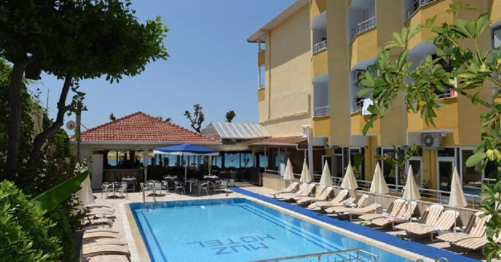 Localizare: Muz Hotel se gaseste in Alanya, la 17 minute de mers pe jos de Autogara Alanya, fiind situat direct pe plaja.Facilitati hotel: Hotelul pune la dispozitia clientilor: piscina in aer liber, Wi-Fi, access imediat la plaja, SPA si centru de wellness, parcare, bar, room service, baie turceasca.