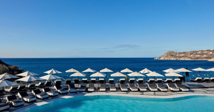 Myconian Imperial - Leading Hotels of the World oferă servicii de 5 stele, o vedere uimitoare la Marea Egee, precum și o zonă de plajă privată. Oaspeții au la dispoziţie facilități de spa, preparate gourmet, o cadă cu hidromasaj și 3 piscine. În toate zonele există WiFi gratuit. Localul Meltemi servește un mic dejun american generos. Restaurantul à la carte Celebrities oferă preparate mediteraneene rafinate. De asemenea, oaspeţii pot alege între cele 2 baruri de cocteiluri şi un bar pe plajă.