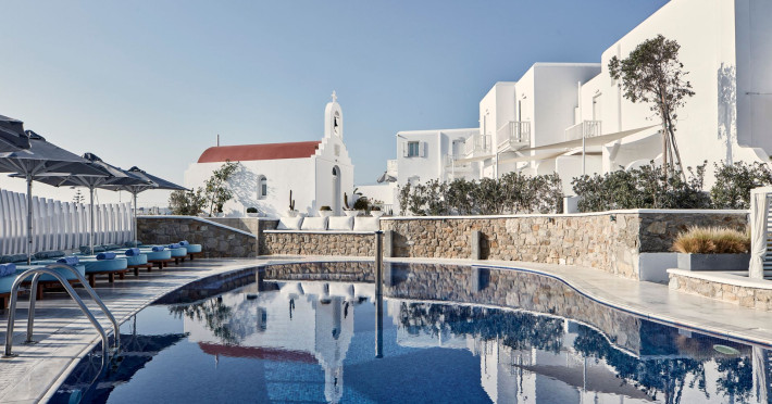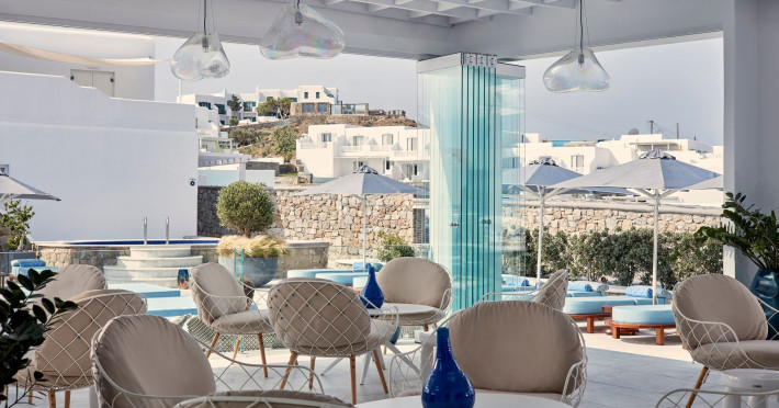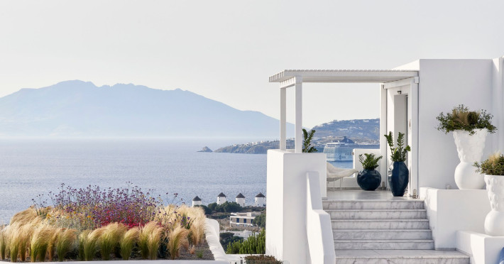Kyma is king of the hill, a 5-star haven of luxury hospitality high above Mykonos town yet just a short stroll from the action – the very spot where George Daktylides placed the first stone of the Myconian Collection some 40 years ago. Ever since, this strikingly beautiful and intimate 5-star member of Design Hotels has cultivated a loyal jet-set following that prizes not only the world-famous views of the windmills and Little Venice, but the warmth of its hallmark service, cool ambience and beautiful bones. Neither too trendy nor too traditional, Kyma is a place for true originals. It hits the right note between laid-back luxury and meticulous attention to detail – revealing a world of sublime experiences, lush gardens, panoramic views, private terraces, and art-filled spaces that come alive in contrasts of marble and wood.