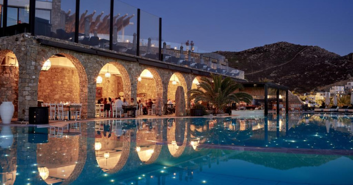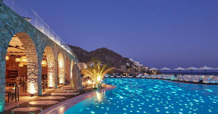 Myconian Royal este o proprietate de 5 stele care se află în Elia (Mykonos) și oferă piscină în aer liber, terasă cu șezlonguri și umbrele de soare, precum și centru spa/wellness care asigură servicii pentru un sejur extrem de relaxant. Proprietatea are servicii de recepție cu program non - stop și concierge. Se oferă acces gratuit la internet Wi-fi în spațiile publice. Parcarea este disponibilă la proprietate gratuit.