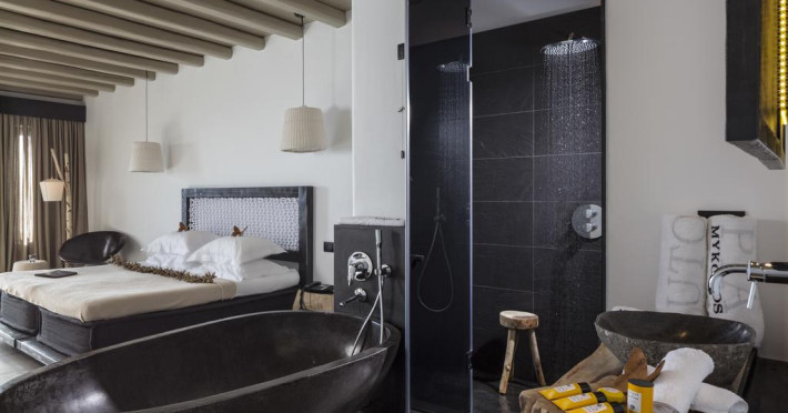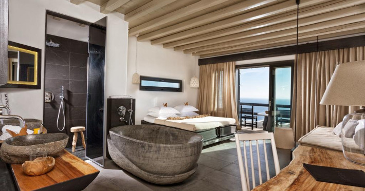 Myconian Utopia Resort se află la 10 km de Orașul Mykonos și la 5,1 km de Aeroportul Mykonos. La cerere proprietatea organizează transfer la/de la aeroport.