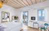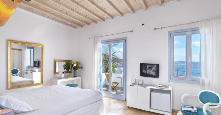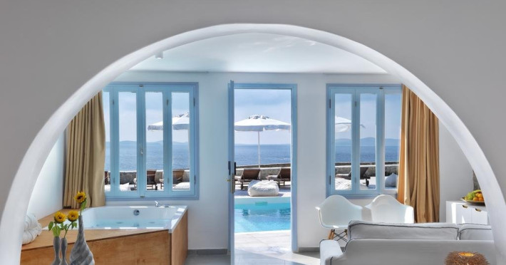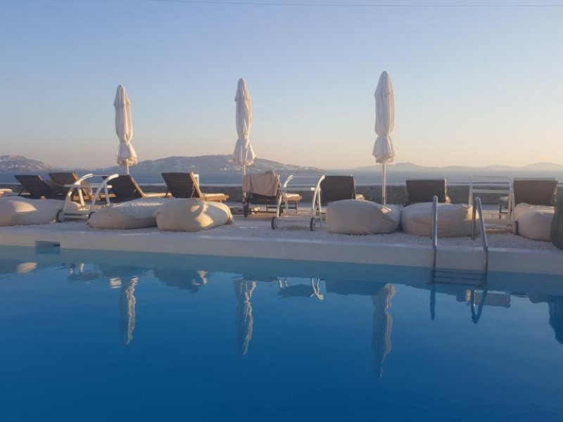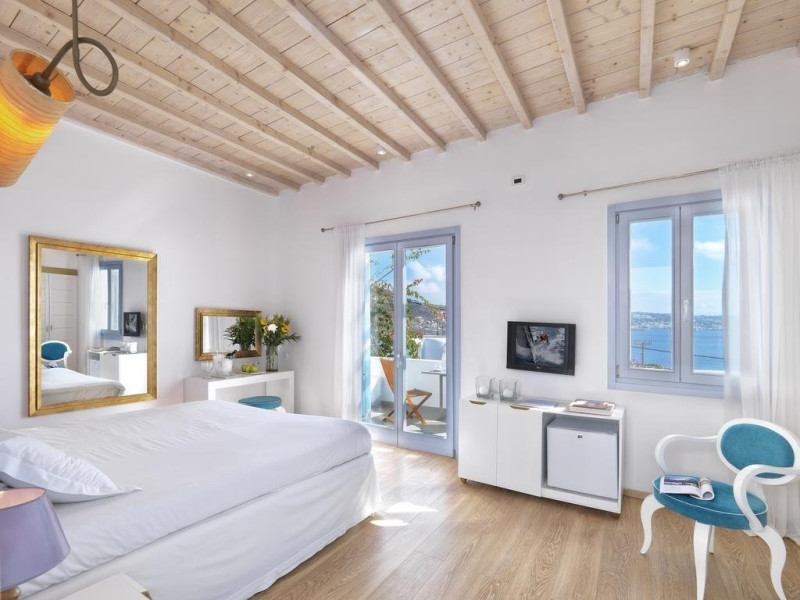 Facilitati hotel: Hotelul Mykonian Mare Luxury Boutique are o piscina in aer liber inconjurata de sezlonguri, o zona de receptie deschisa 24 de ore pe zi, oferind servicii de concierge. Complexul Open Air Spa ofera tratamente de infrumusetare si de intinerire.