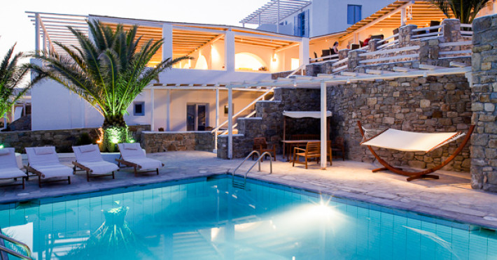 Hotelul dispune de piscina, centru spa, room-service 24 h, transfer gratuit de la aeroport la hotel si retur, centru spa, serviciu curatatorie/spalatorie, shuttle buss catre Mykonos Town, parcare private, bautura de “bun venit”, prosoape de plaja la receptie, coafor, baby-sitting, rent-a-car, doctor ( la cerere), facilitati excursii de lux.