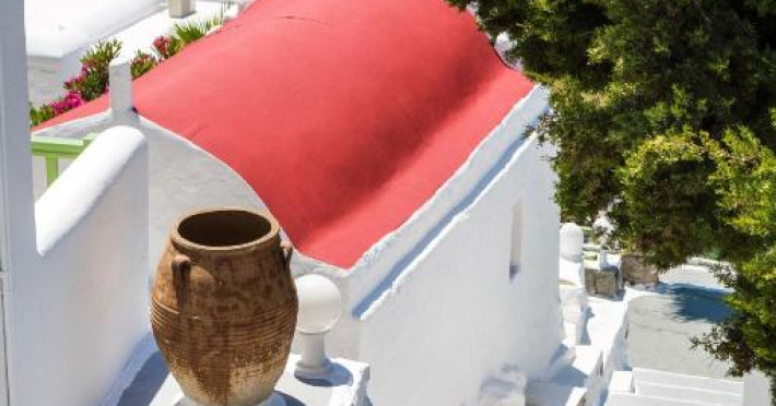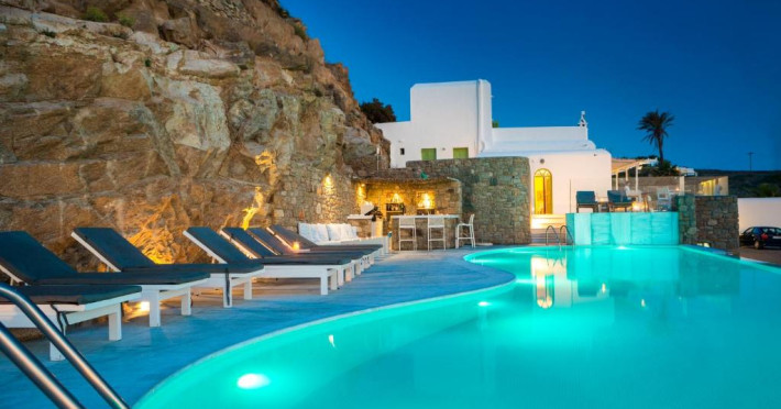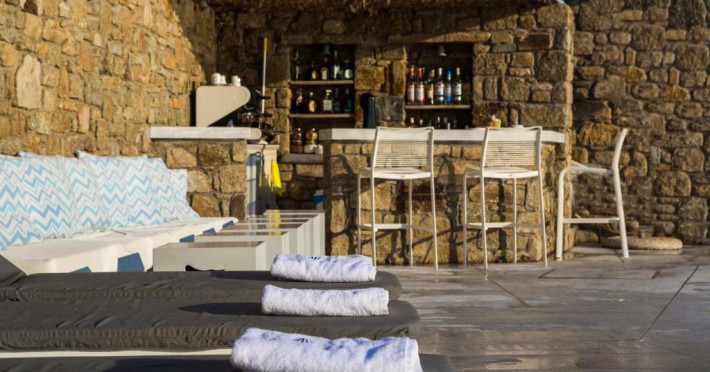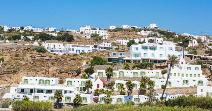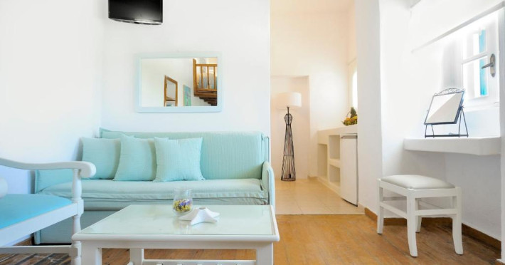 Acest complex in stil cicladic, situat pe Plaja Megali Ammos se află la 15 minute de mers cu masina de aeroportul si portul insulei Mykonos. Camerele cu aer conditionat au balcon cu vedere la Marea Egee. Oferă acces gratuit la conexiunea WiFi si un mic dejun tip bufet.