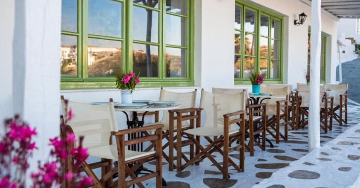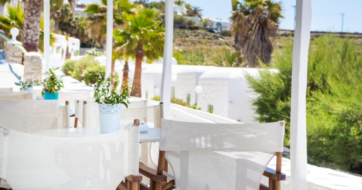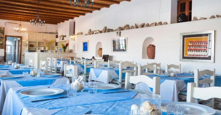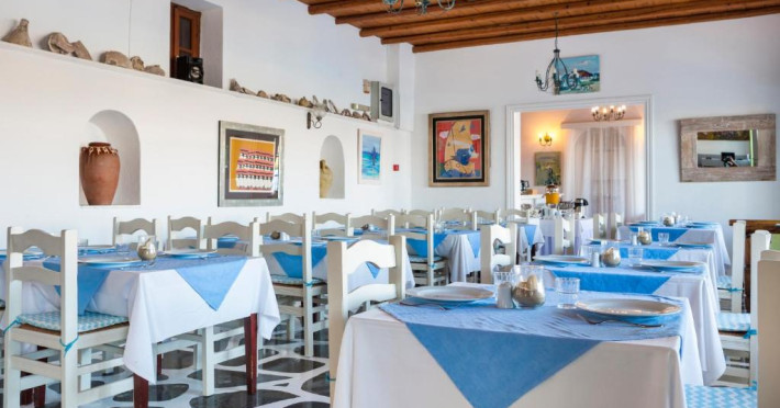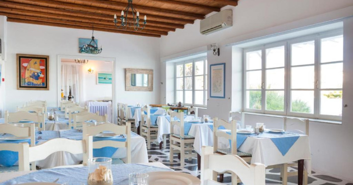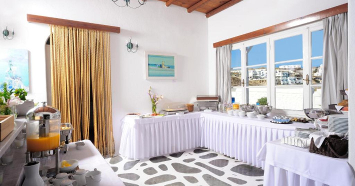 Oaspetii isi pot incepe ziua cu un mic dejun tip bufet servit zilnic in sala de mese. In 10 minute se poate ajunge pe jos in centrul localității Mykonos, unde există numeroase restaurante si opțiuni de agrement.