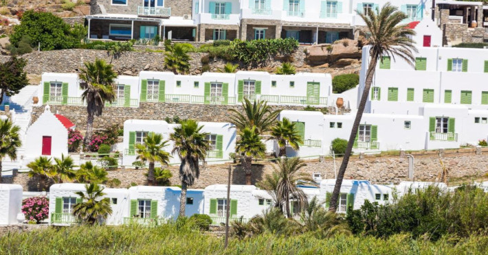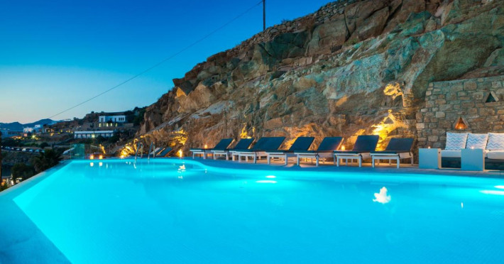 Complexul este situat pe Plaja Megali Ammos si se află la 15 minute de mers cu masina de aeroportul si portul insulei Mykonos.