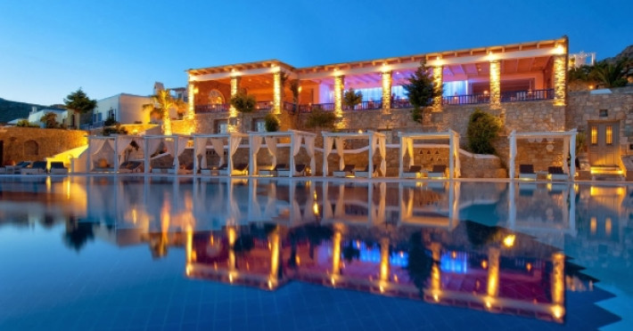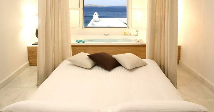Mykonos Grand ofera spatii de cazare de tip boutique cu design placut, asigurand placerea si relaxarea prin localizarea sa care este printre poteci pietruite cu vedere la insula Delos.Localizare