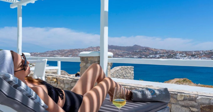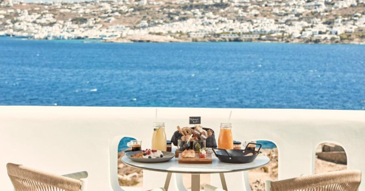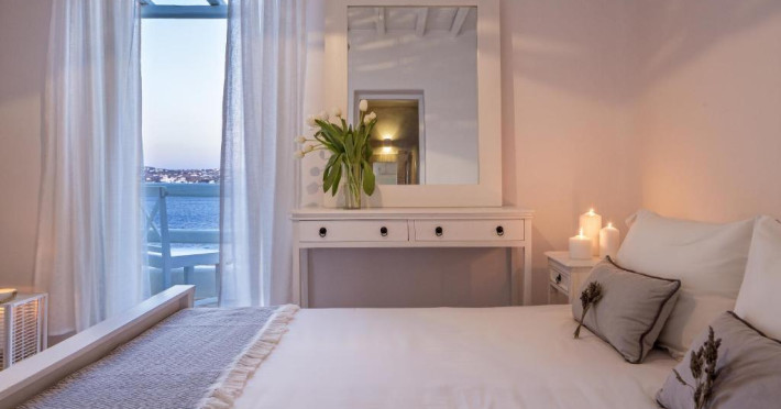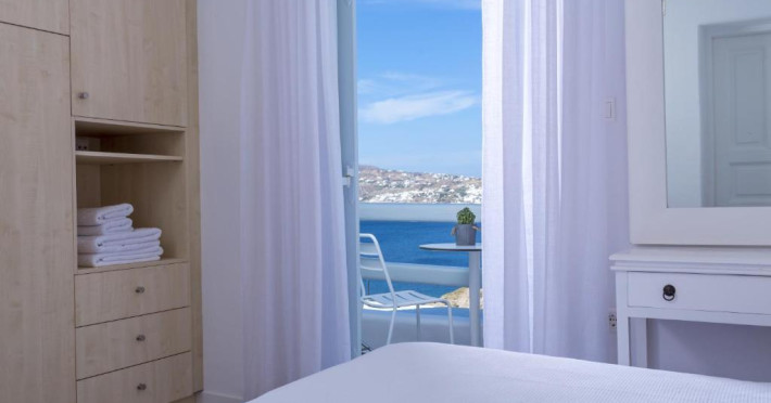 Mykonos No 5 are în apropiere o plajă cu nisip. Pe plajă există șezlonguri și umbrele de plajă contra cost.