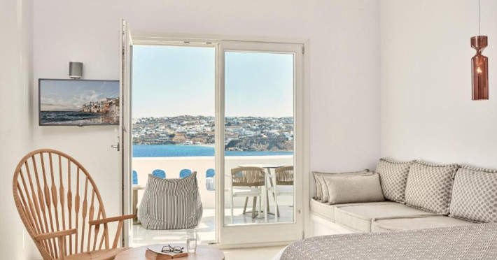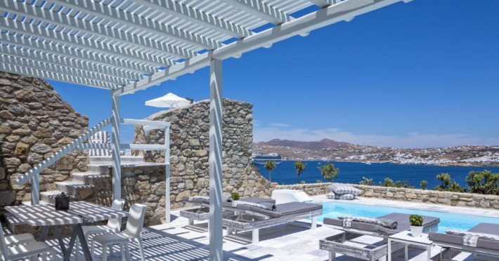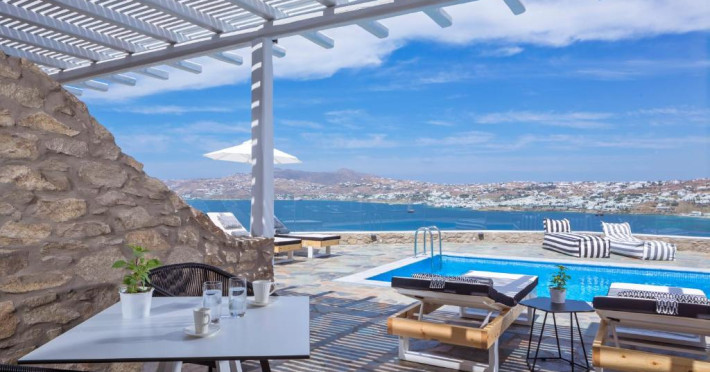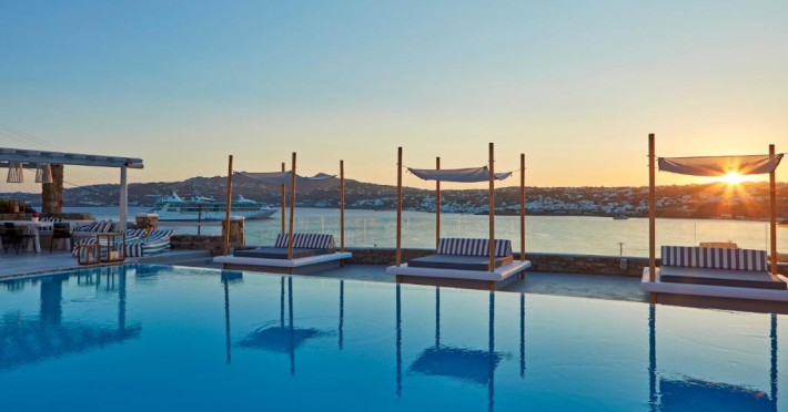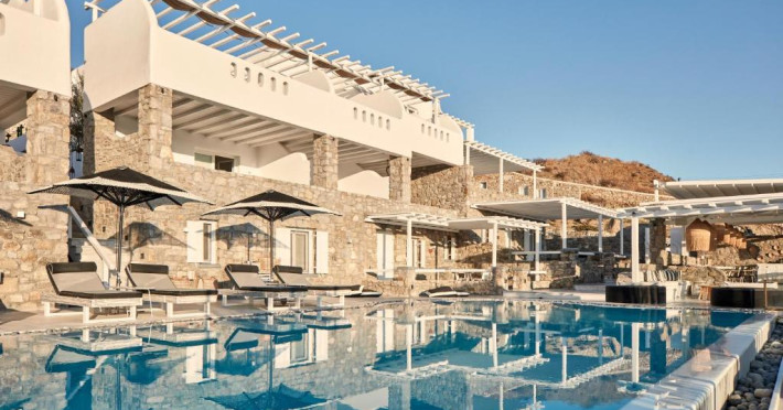 Amplasată în Ornos (Mykonos), la 950 m de plaja Korfos, Mykonos No 5 este o proprietate de 4 stele care oferă o piscină în aer liber, terasă cu șezlonguri și umbrele de soare și unități de cazare cu aer condiționat. Facilitățile de la Mykonos No 5 includ și sală de fitness. Proprietatea are, de asemenea, servicii de recepție cu program non - stop, concierge și închirieri auto. Se oferă acces gratuit la internet Wi-fi în spațiile publice. Parcarea este disponibilă la proprietate gratuit.
