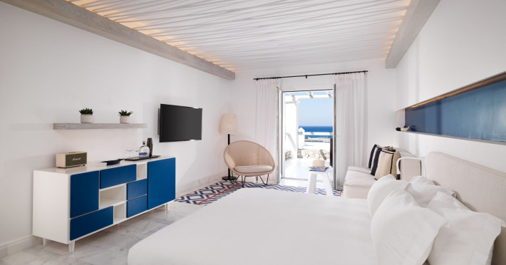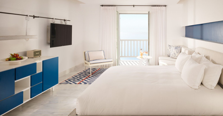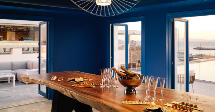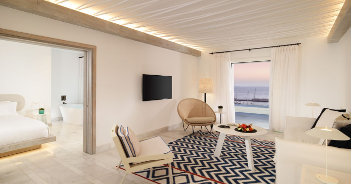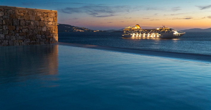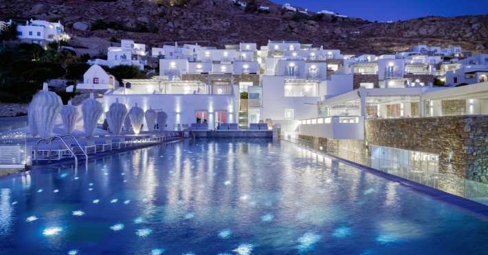 Hugging the cliff, ascending from the main road across from the island’s marina, and covering an area of 2 acres, the brand new 5 star Mykonos Riviera Hotel & Spa offers sea views, and bedazzles visitors with its island chic vibes, refreshing nautical theme, minimalistic luxury, two restaurants, a stunning 500 square meter Spa center, and its 200 square meter infinity starlight pool, graciously cascading in the horizon. The pool and bar area is impeccably designed, offering unsurpassed moments of relaxation. The hotel is located a few minutes away from the beautiful beach of Agios Stefanos(1,0km), and a lovely short stroll from the scenic, yet stunning Mykonos Town (4 km), the island’s world-famous capital. Island chic luxury is indeed reinvented in Mykonos Riviera; the sparkling new addition to the island's luxurious accommodations.Hugging the cliff, ascending from the main road across from the island’s marina, and covering an area of 2 acres, the brand new 5 star Mykonos Riviera Hotel & Spa offers sea views, and bedazzles visitors with its island chic vibes, refreshing nautical theme, minimalistic luxury, two restaurants, a stunning 500 square meter Spa center, and its 200 square meter infinity starlight pool, graciously cascading in the horizon. The pool and bar area is impeccably designed, offering unsurpassed moments of relaxation. The hotel is located a few minutes away from the beautiful beach of Agios Stefanos(1,0km), and a lovely short stroll from the scenic, yet stunning Mykonos Town (4 km), the island’s world-famous capital. Island chic luxury is indeed reinvented in Mykonos Riviera; the sparkling new addition to the island's luxurious accommodations.