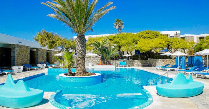 Hotelul Mykonos Theoxenia, construit intr-un stil architectural traditional cicladic, reprezinta o oaza de linistite si lux, aflat in apropiere de viata de noapte plina de farmec a orasului Mykonos.Localizare