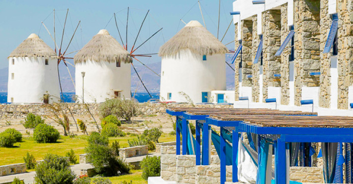 Hotel Mykonos Theoxenia este situat langa celebrele mori de vant din Mykonos. Se afla la cateva minute de mers pe jos de centrul orasului Mykonos, in apropiere de aeroport si port.