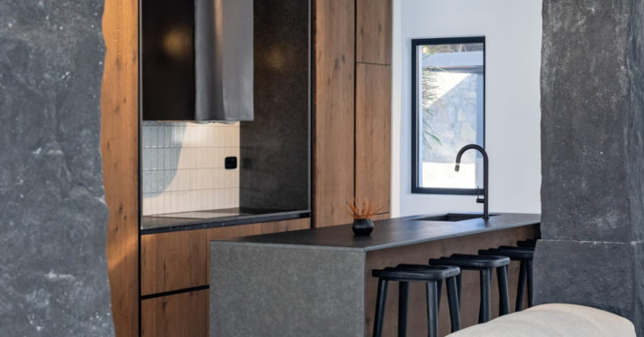 Mykonos Town Black Villa with Cave Heated Pool