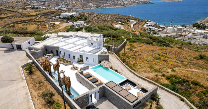 A luxury six-bedroom villa with en suite bathrooms, featuring an infinity pool, outdoor Jacuzzi, and heated cave pool. Designed for tranquility and style, it offers stunning sea views, elegant alfresco dining, and lounge areas.Inside, enjoy minimalist design, premium amenities, a fully equipped kitchen, and king-size beds—perfect for both relaxation and memorable photos.Ideally located near Mykonos Town, the villa includes a private walking path for easy access to shops, beaches, and nightlife. Our concierge can arrange reservations and curated experiences to personalize your stay.A luxury six-bedroom villa with en suite bathrooms, featuring an infinity pool, outdoor Jacuzzi, and heated cave pool. Designed for tranquility and style, it offers stunning sea views, elegant alfresco dining, and lounge areas.Inside, enjoy minimalist design, premium amenities, a fully equipped kitchen, and king-size beds—perfect for both relaxation and memorable photos.Ideally located near Mykonos Town, the villa includes a private walking path for easy access to shops, beaches, and nightlife. Our concierge can arrange reservations and curated experiences to personalize your stay.