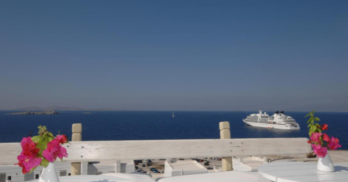 Mykonos View oferă cazare în stil cicladic, cu vedere la Marea Egee sau la oraşul Mikonos. Are o piscină impresionantă, un lounge bar deschis nonstop şi o zonă de mic dejun cu şezlonguri. Accesul la internet WiFi este disponibil în zonele publice. În zona de mic dejun a hotelului puteţi savura un mic dejun american în fiecare dimineaţă. Cunoscutul bar-restaurant Oniro propune preparate mediteraneene şi cocktailuri răcoritoare cu vedere la asfinţitul frumos.