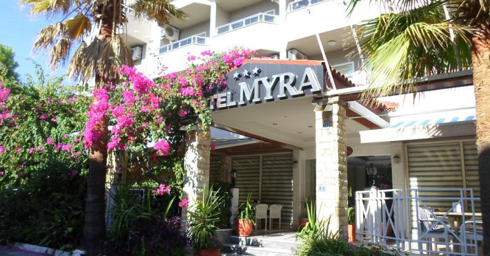 Hotel Myra este construit pe o suparafata de 1400 mp și este format dintr-o cladire principala cu 5 nivele și o cladire anexa cu 4 nivele. Hotelul accepta animale de companie. Myra iti ofera o primire traditionala calda, specific turceasca, alaturi de o serie de facilitati si servicii care iti vor intregi sejurul.
