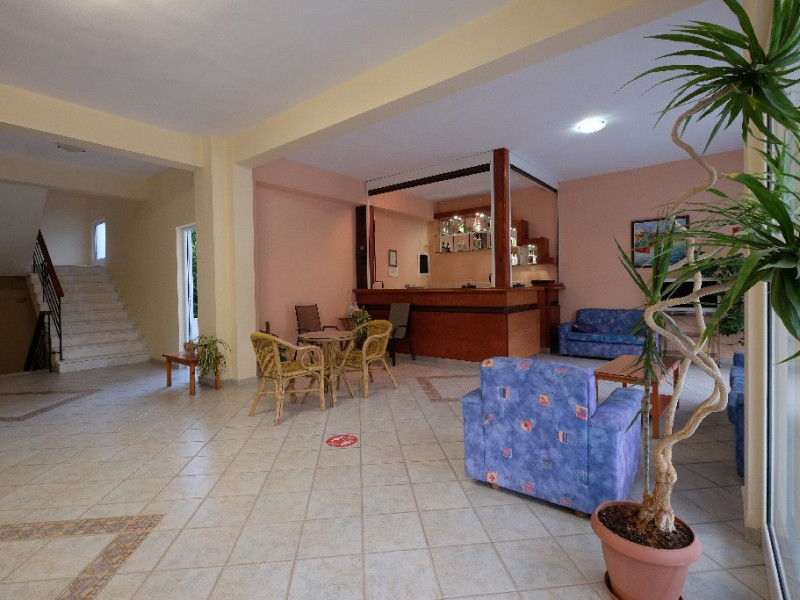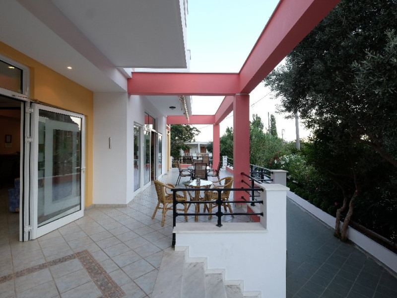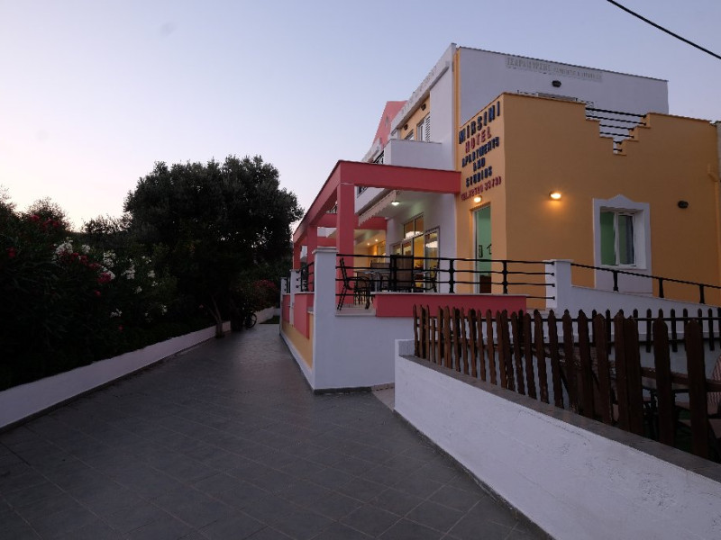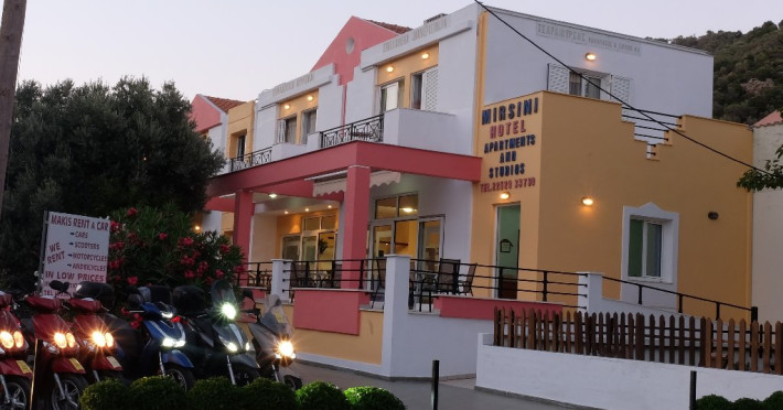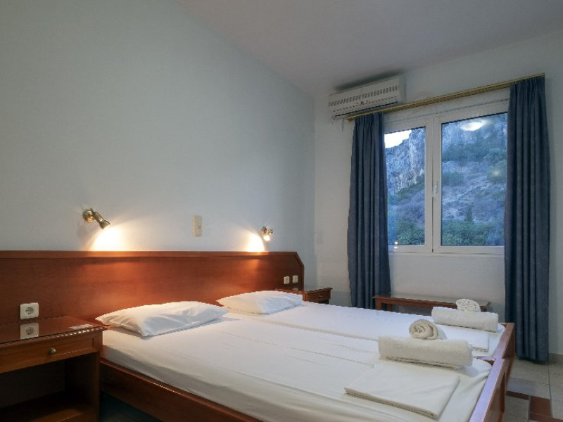 DOTARI CAMERE: Studiourile spatioase, prevazute cu aer conditionat, va asteapta cu un balcon ce ofera privelisti incantatoare catre Marea Egee si munte. Fiecare unitate include o chicineta echipata cu o plita si un frigider, iar bai private sunt dotate cu dus.