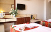 Fiecare cameră este dotată cu telefon, televizor, minibar, aer condiționat, seif (disponibil contra cost), baie cu cadă/duș, uscător de păr și balcon.