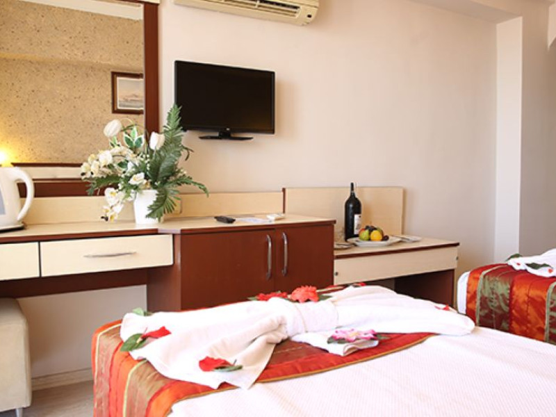 Mysesa Hotels Incekum este o fermecătoare proprietate de 4 stele, renumită pentru rafinamentul și eleganța sa. Cu o amplasare ideală, la doar 100 de metri distanță de apele cristaline ale mării, hotelul se bucură de o plajă spectaculoasă cu nisip fin. Această oază de relaxare oferă o gamă largă de facilități pentru a satisface cele mai exigente gusturi și pentru a crea amintiri de neuitat pentru oaspeții săi. De la servicii de ospitalitate de înaltă calitate la opțiuni de divertisment și relaxare, Mysesa Hotels Incekum se angajează să ofere o experiență de neegalat pentru fiecare vizitator.Facilități camere