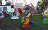 Copiii se pot distra la piscina special amenajată pentru ei.