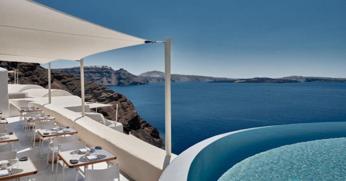 Aleele interconectate deschid drumul către facilitățile unice ale hotelului, inclusiv cele două piscine, unde oaspeții pot savura un cocktail de semnătură de la Barul Circe sau pot gusta vinuri rare, depozitate in Secret Wine Cave, veche de 150 de ani. Cu vedere la apele albastru-cobalt ale Calderei, in timp ce adoptă perfect formele curbate și formațiunile coboratoare de pe marginea stancoasă a Oiei, Lure este simbolul eleganței epicuree din Marea Egee. Sărbătorind alimentația curată și puritatea ingredientelor, bogata moștenire epicuriană a Santorini este tratată revigorant in moduri magistrale. O experiență culinară combinată impecabil cu o selecție atentă de cocktailuri și vinuri de la Lure Bar, găzduite pe terenul restaurantului. Restaurantul Charisma, care servește micul dejun și pranzul, invită oaspeții intr-o ambianță relaxantă, cu vedere panoramică la piscina infinită și albastrul de miezul nopții al Mării Egee. Cu vederi spectaculoase și un meniu incantător de creații influențate de insulă, Balconul Aegean este alegerea perfectă pentru mesele private și sărbătorirea ocaziilor speciale.
